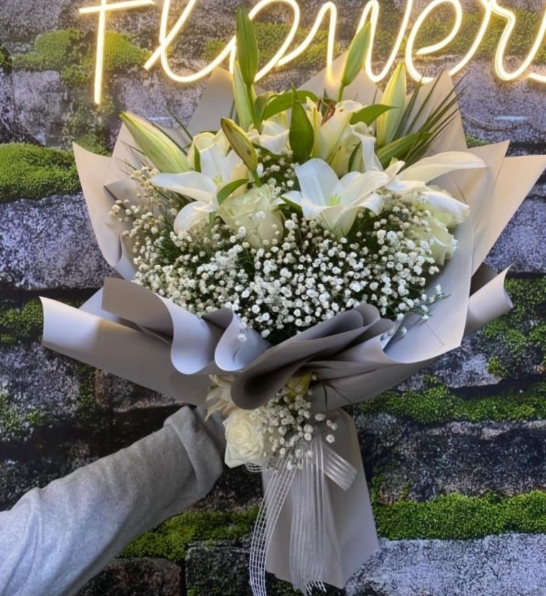₺4,000.00Beyaz Gül ve Lilyum Buketi BKT0166