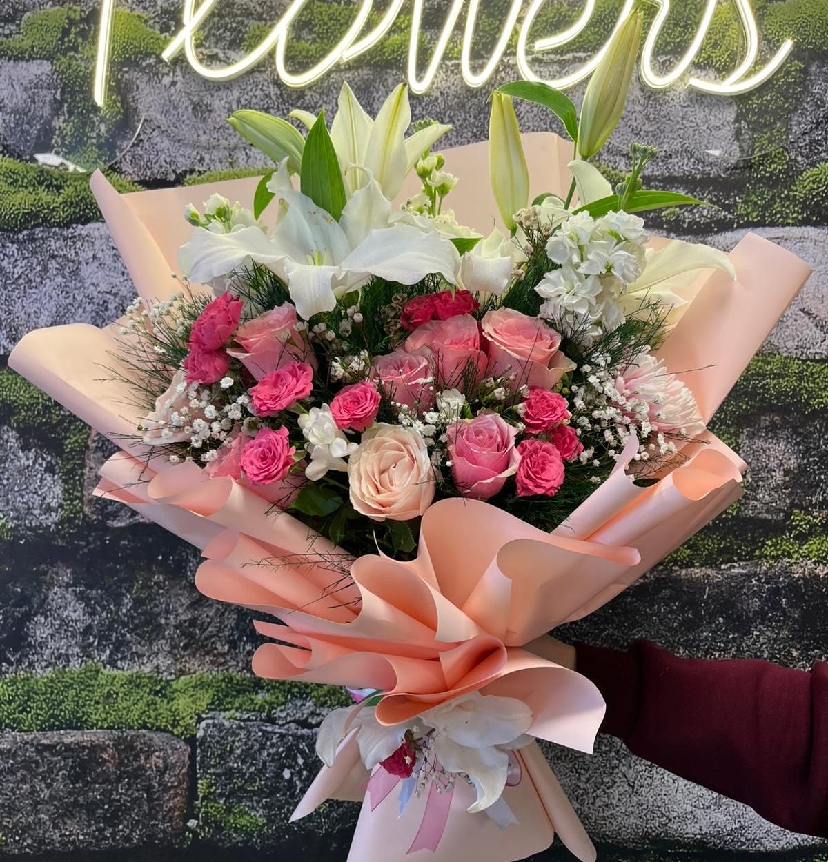 ₺1,800.00Beyaz Gül Lilyum Buketi BKT0170