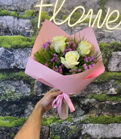 ₺600.00Zarafetin en sade hali! 🌸 Üç adet taze beyaz gül, aşkın ve saf duyguların simgesini taşırken, etrafını saran pembe cipsolar ile romantik bir dokunuş kazanıyor. 🌷 Minimal tasarımıyla hem zarif hem de duygusal bir hediye alternatifi.