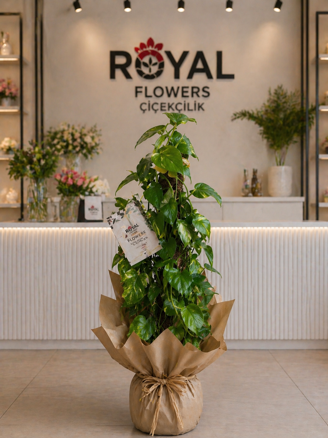 Royal Flowers imzasıyla hazırlanan 100 cm boyunda Patos (Pothos) sarmaşık bitkisi, güçlü ve dolgun yaprak yapısıyla bulunduğu ortama doğal bir şıklık kazandırır. Modern kraft paketlemesiyle birlikte hem lüks hem de profesyonel bir sunum sağlar.