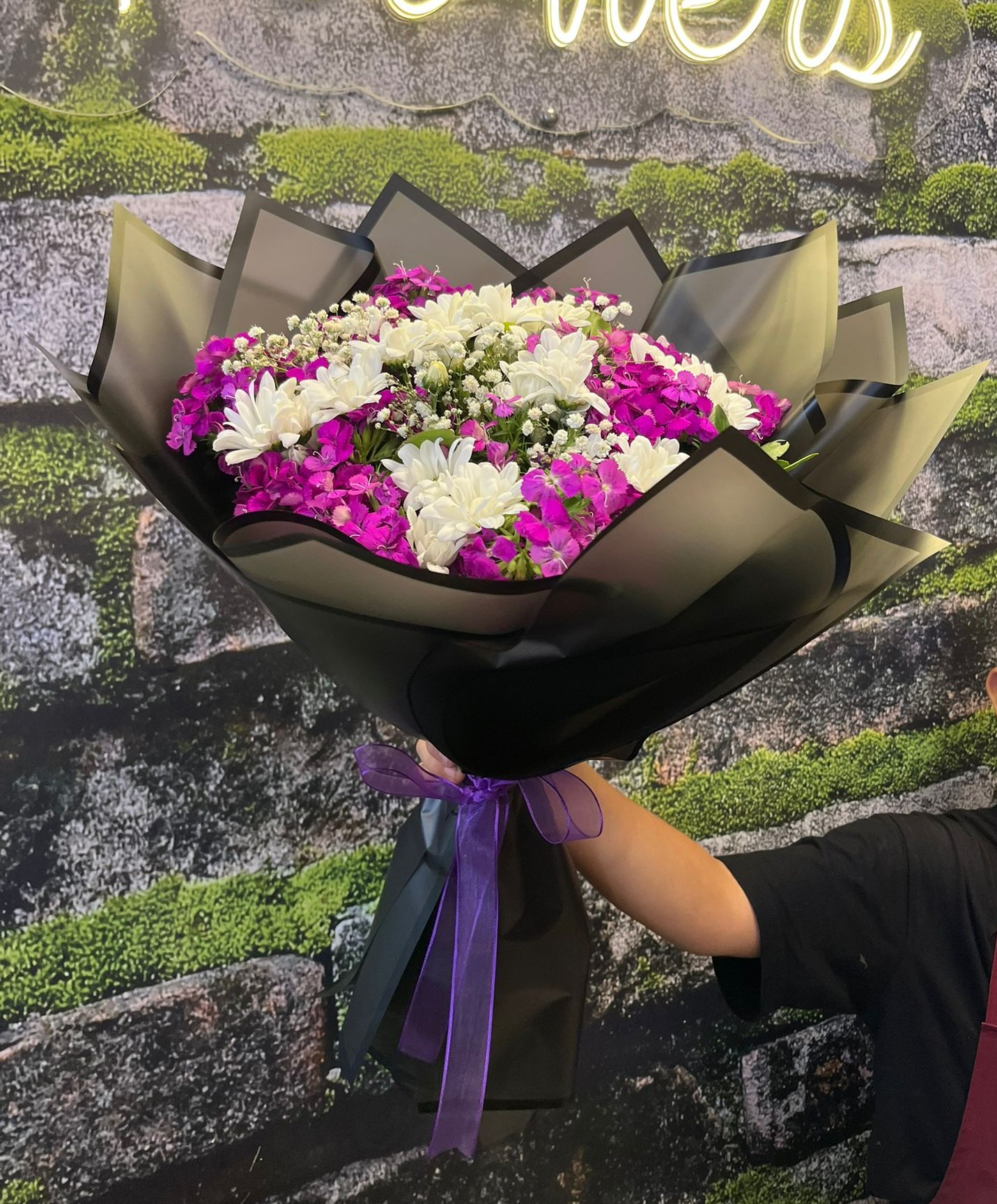 Şıklığın ve zarafetin buluştuğu bu özel buket, mor tonlarındaki hüsnü yusuf çiçekleri ile beyaz papatyaların eşsiz uyumunu yansıtıyor. 🌸