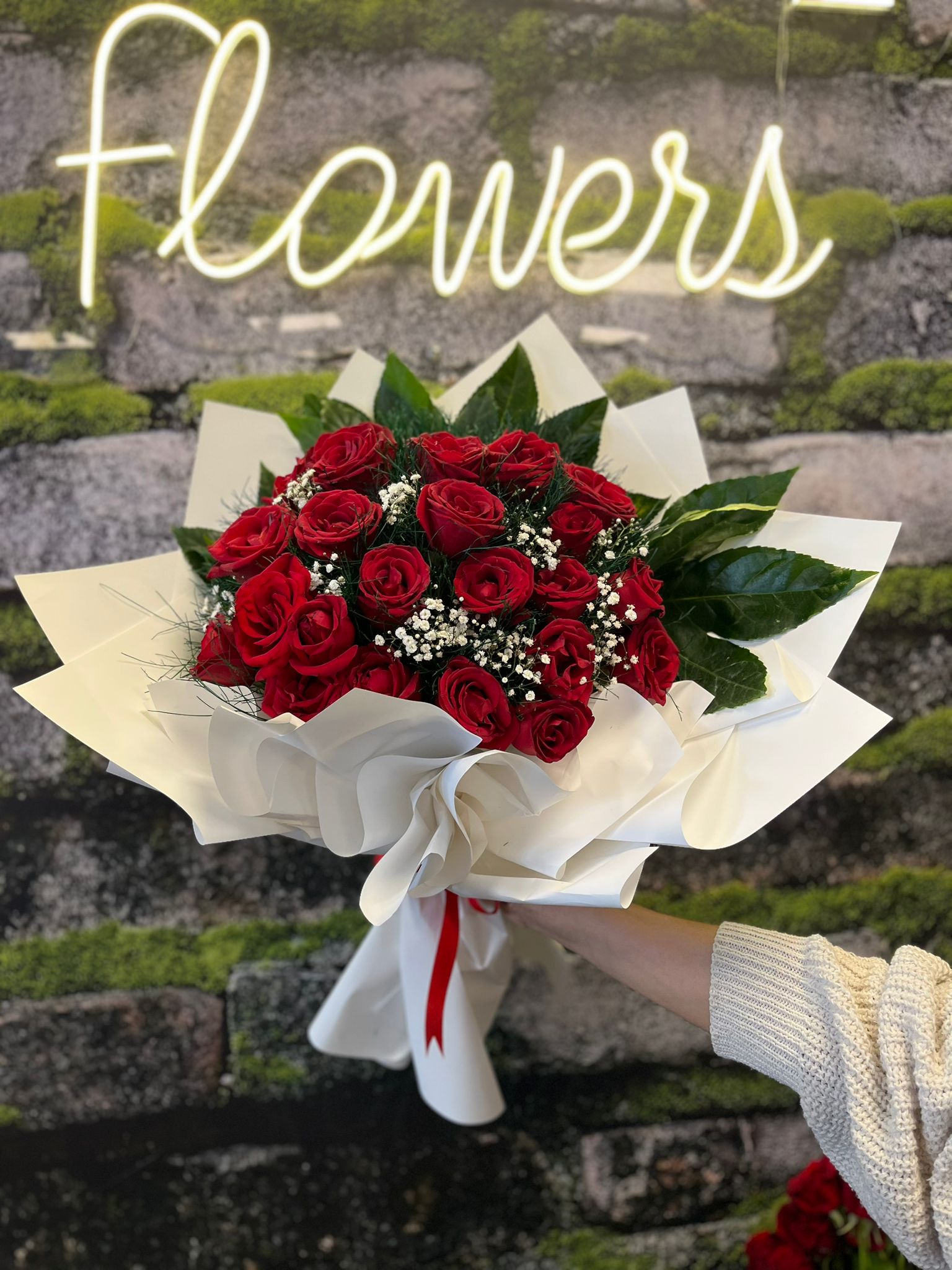 Sevginizi en özel şekilde ifade etmek için tasarlanan bu şık kırmızı gül buketi, aşkın, tutkunun ve zarafetin en güçlü sembolüdür. ❤️ Saf beyaz ambalajın içerisinde özenle yerleştirilmiş canlı kırmızı güller, masumiyeti temsil eden cipso çiçekleri ve yemyeşil yapraklarla birleşerek göz alıcı bir uyum yakalıyor. ✨