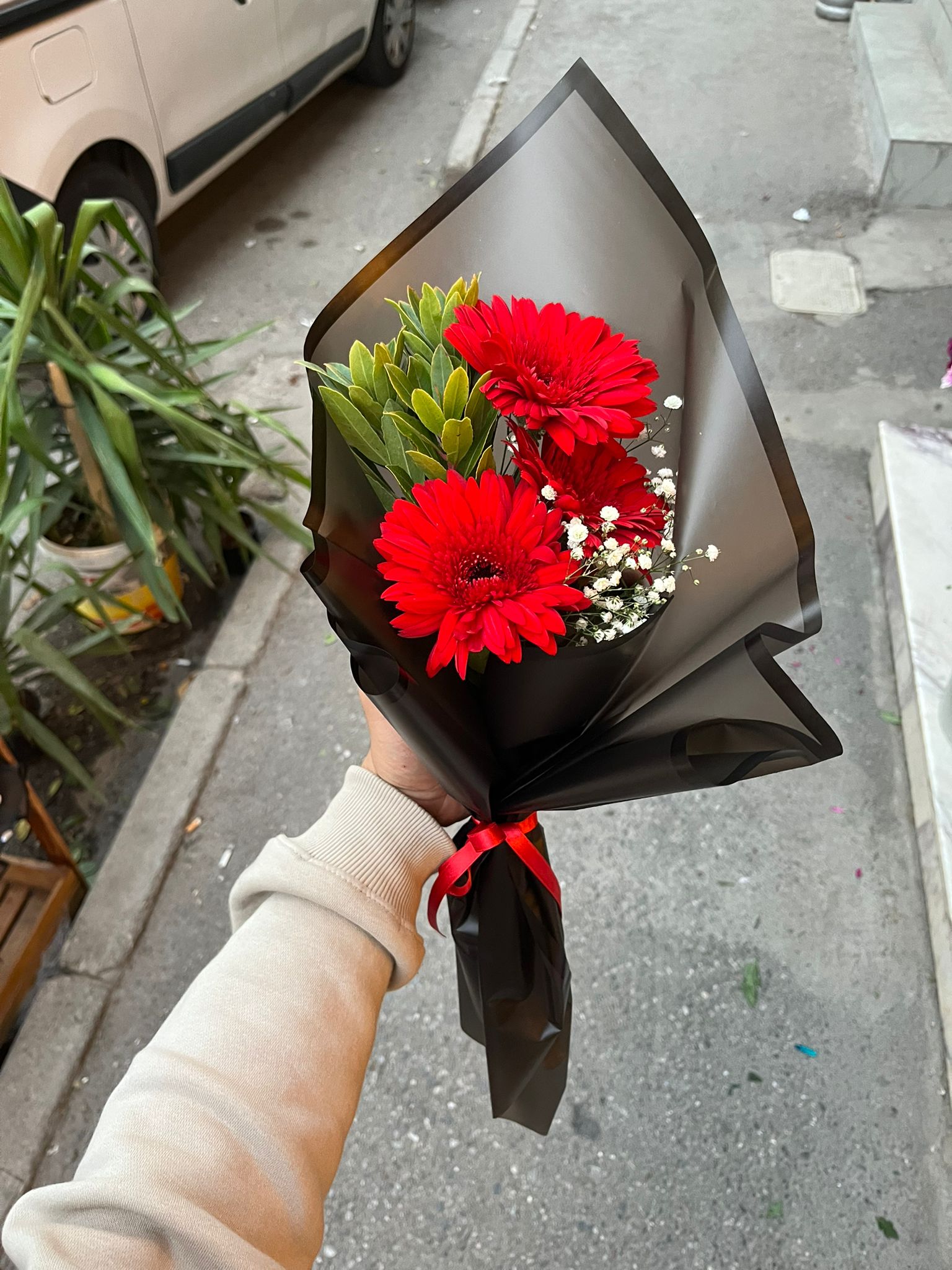 3’Lü Kırmızı Gerbera Buketi (Mini Buket)