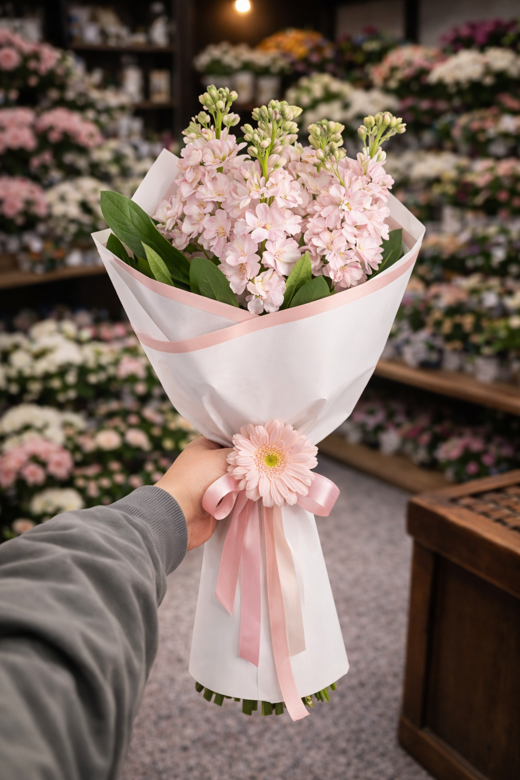 Doğal güzelliği ve hoş kokusuyla öne çıkan 5 adet pembe şebboydan hazırlanan bu zarif buket, sade şıklığıyla dikkat çeker. Pastel tonların uyumu ve modern ambalajı sayesinde; doğum günü, özel günler ya da içten bir sürpriz için mükemmel bir tercihtir.