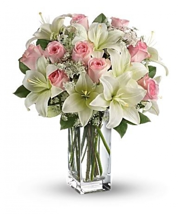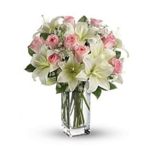 Cam Vazoda Lilyum ve Pembe Güller ARJ0039
