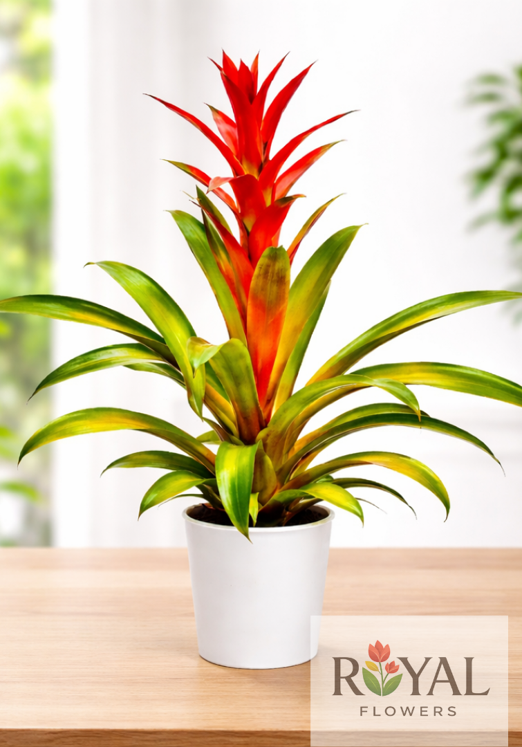 Kırmızı Guzmanya Saksı Çiçeği | Canlı Tropik Bitki🌺