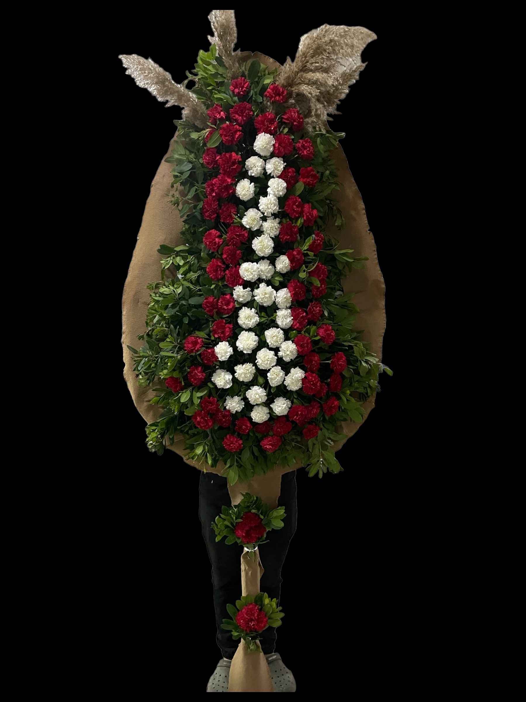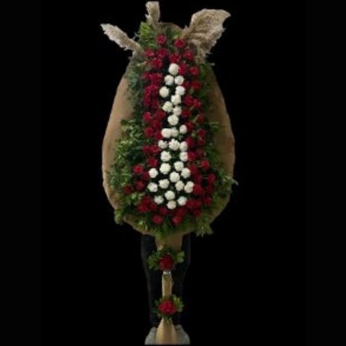 Kırmızı ve Beyaz Karanfilden Oluşan Çelenk CLK0024