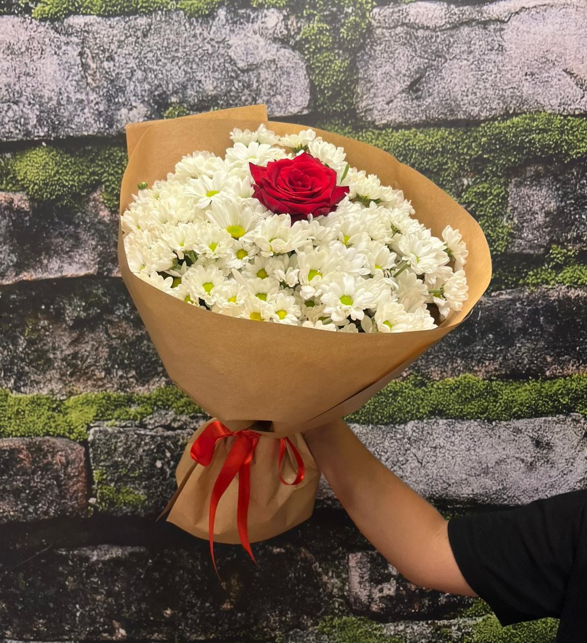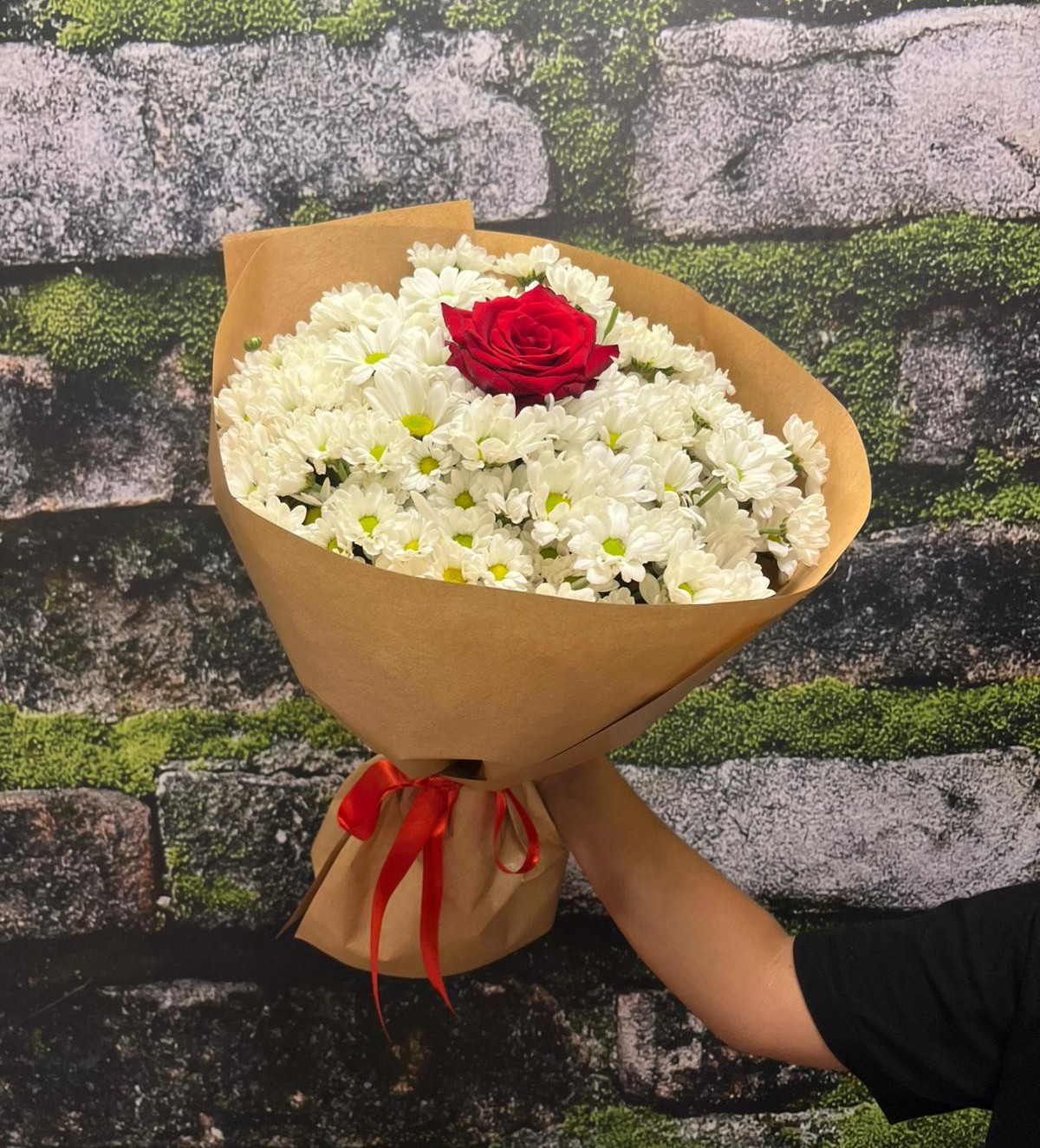 Kraft Kağıtta Gül Beyaz Papatya Buketi