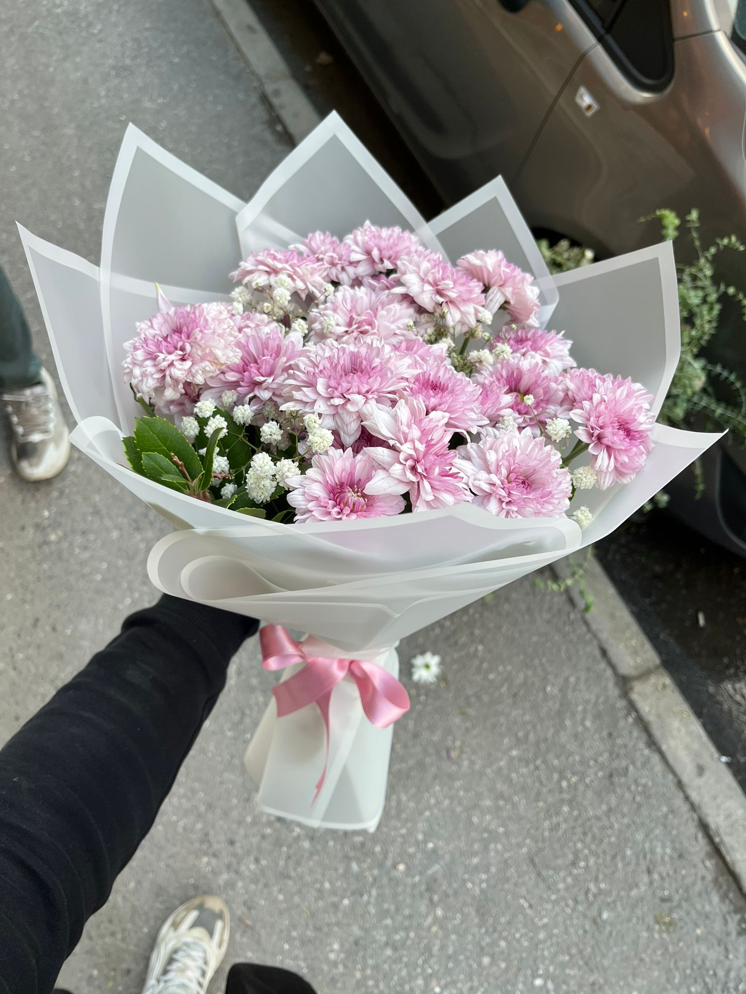 👉 Zarif, anlamlı ve şık bir hediye arıyorsanız orta boy pembe kasımpatı buketi tam size göre! 🌸💞