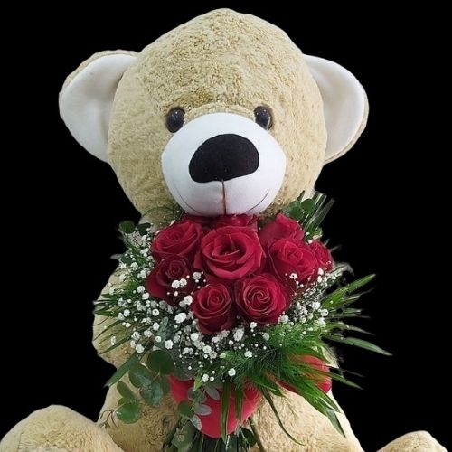 Peluş Ayıcık ve Kırmızı Güller 10 Dal BKT0145