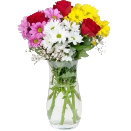Renkli Papatyalar İçinde Gül Aranjmanı ARJ0041