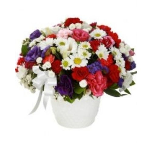 Seramik Saksıda Renkli Mevsim Çiçekleri Aranjman ARJ0036