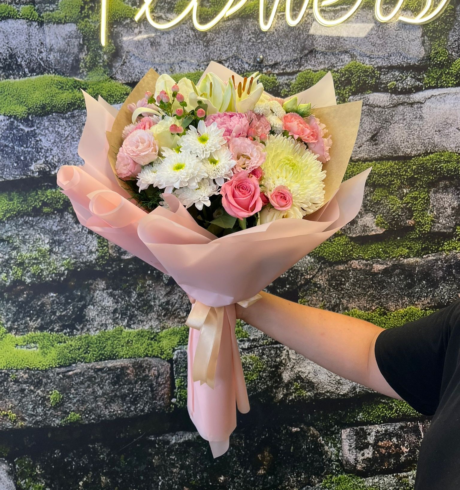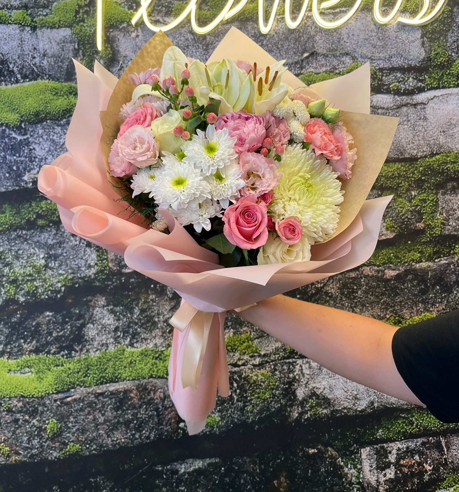Tamamen ithal çiçeklerden tasarlanmış anastasia,ithal güller,şakayık,pembe karanfiller,lilyum ve krizantemden oluşan trend ürün ile sevdiklerinize unutamayacağı bir buket sununuz.